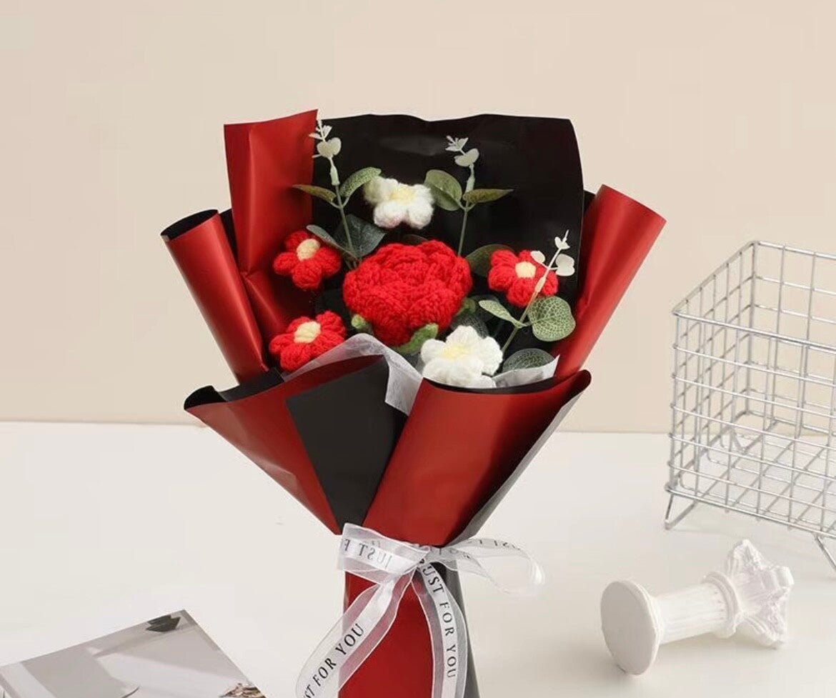 A bold handmade red crochet flower bouquet that symbolizes love and warmth. ❤️